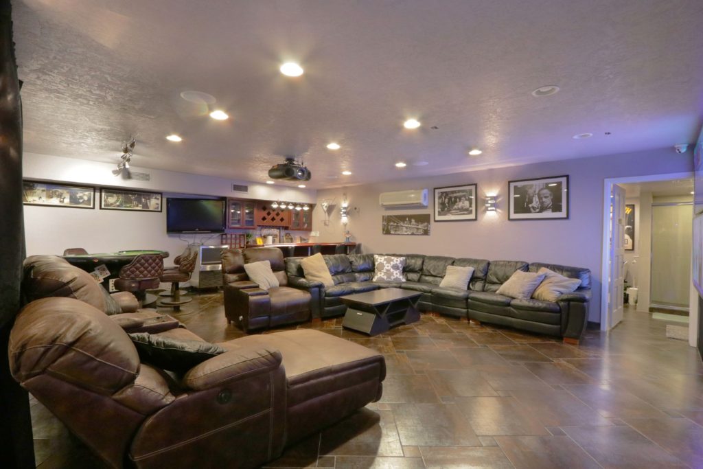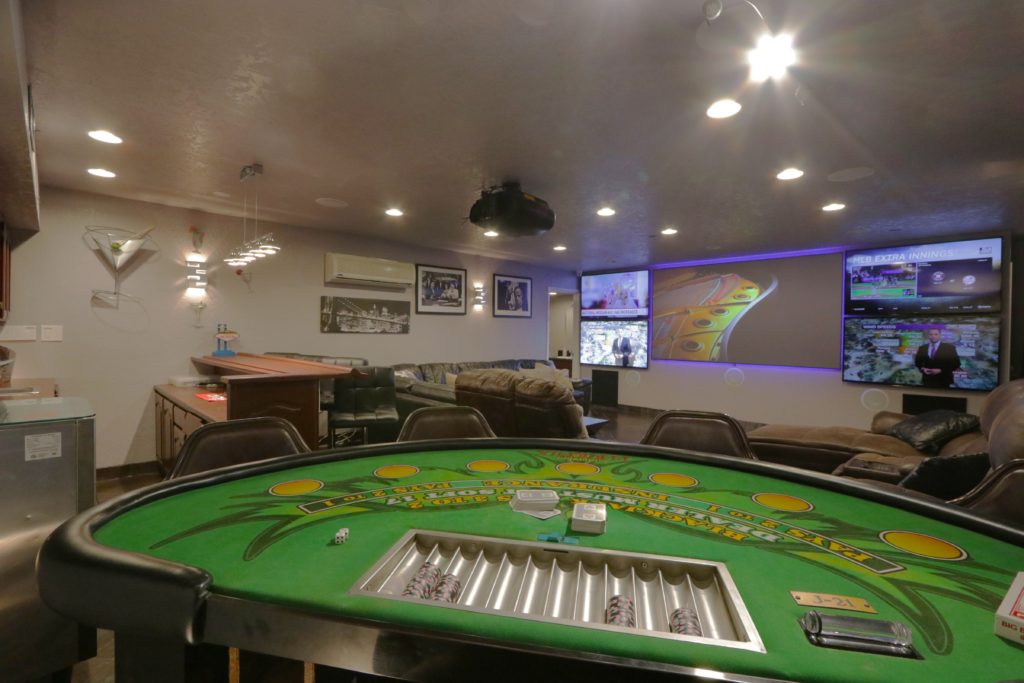 Movie Room – Bar, 2 sofas, poker table, Theater TV + 4 more TVs