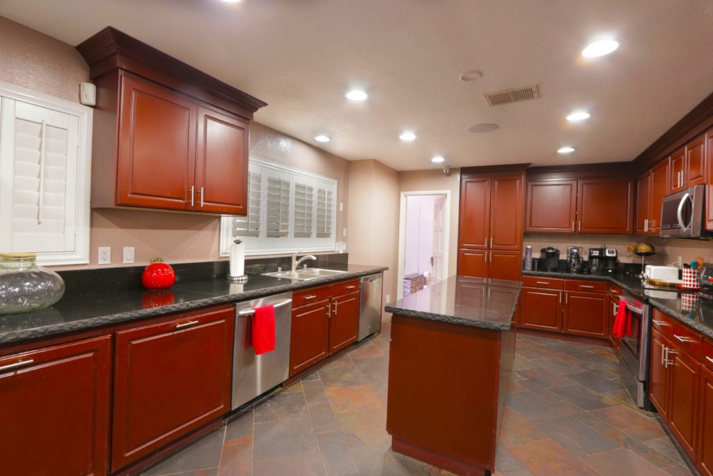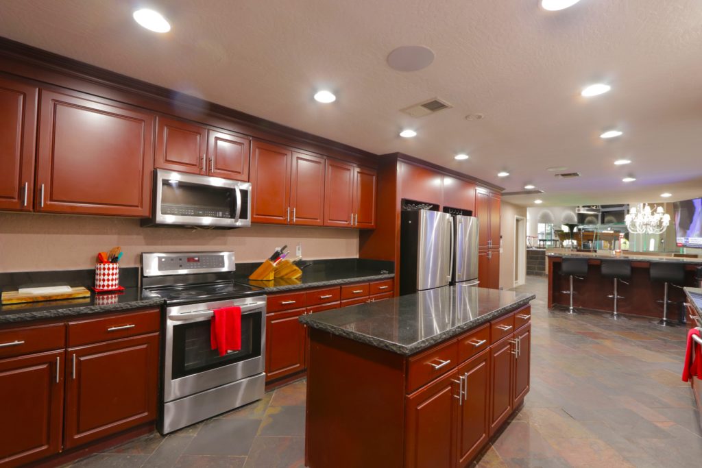 The owner spares no expense on this home with the latest technologies. The property is stocked with towels and soap and is completely ready for a large group. The gourmet kitchen has 2 refrigerators, 2 dishwashers, and dual hidden trash containers. The Kitchen is fully stocked for large groups with all cooking pans and accessories. There are 2 full-size clothing washing machines and dryers. The amenities are second to none! There is also a horseshoe pit, a 2,400 sf putting green and a gas and charcoal BBQ.