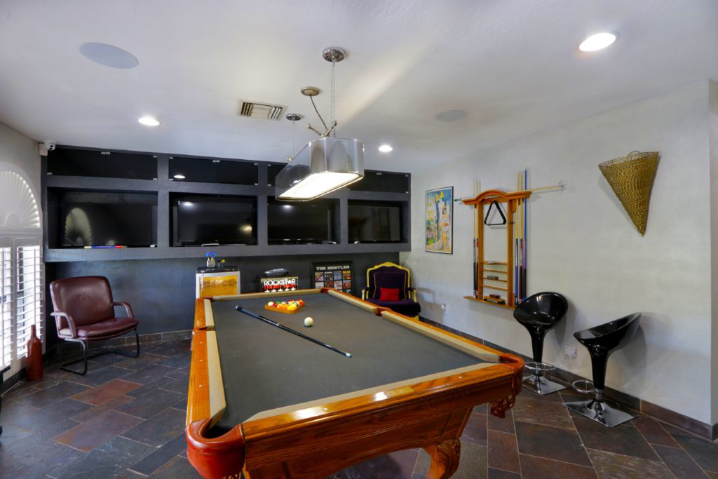 County ordinance requires a lease of 31+ days. Players Compound has 4 levels, 20 Rooms, 7500+ SF, 7 A/C’s, 10+ BR’s (Most Suited), 11 Bathrooms, 21 Queen+ Beds, 30+ PPL Dining, 30 TV’s Full DirecTV, Phillips Hue Color Lighting, Velop Web WIFI, Pool, Jacuzzi, 120″ Laser Theater w 7 TV’s, SUPER KING BED!, Spinning Stripper Pole, DJ Setup, Sonos, Deluxe Poker Table, Real Casino 21 Table, Craps Table, Olhausen Pool Table, BBQs, Basketball Court, Shuffleboard, Putting Green, 2 Sand Traps, Horseshoes.